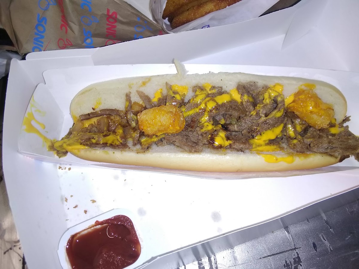 We're from out of town and stopped here for a quick bite. It was crowded but our food still came out quickly. Everything was hot and fresh. What a great Sonic location!